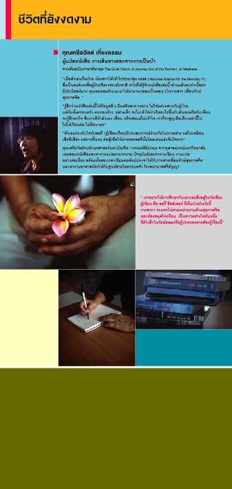 The theme of the event was taken from a book “The Quiet Room: A Journey out of the Torment of Madness” written by Lori Schiller, a former patient herself to describe her experience suffering from the conditions and her journey to recovery. Khun Kruewan Thiengtham, also a former patient, translated the book into Thai and joined the discussion in the afternoon.