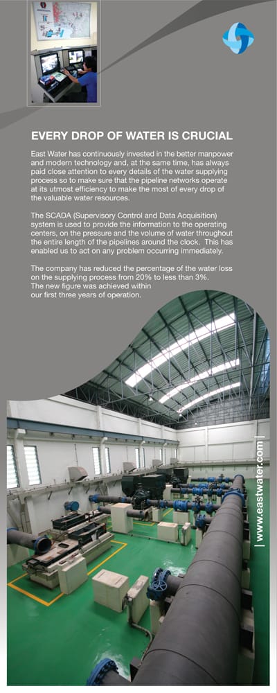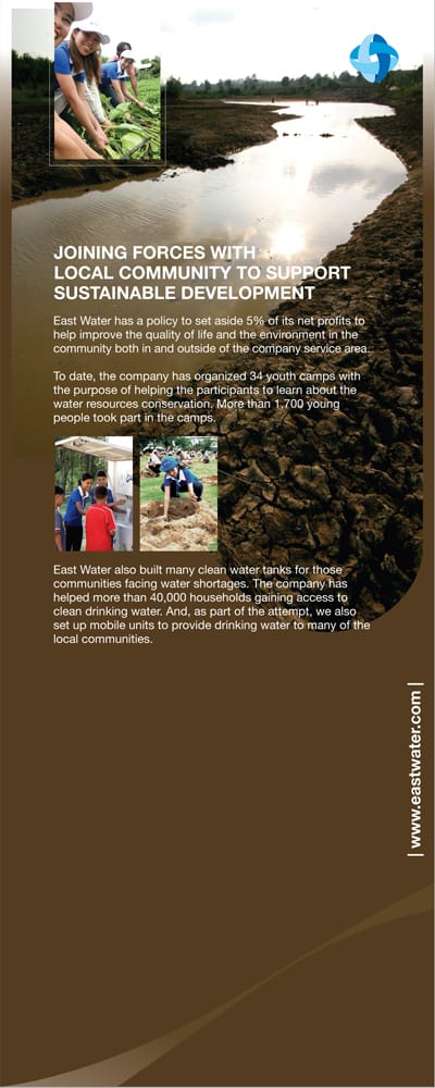 We design and implement a corporate communication program with a focus on corporate customers of East Water and investors. We develop creative materials both for print and television to highlight East Water’s expertise and its commitment to continuously develop its infrastructure to provide a reliable supply of water to sustain life and economic activities.